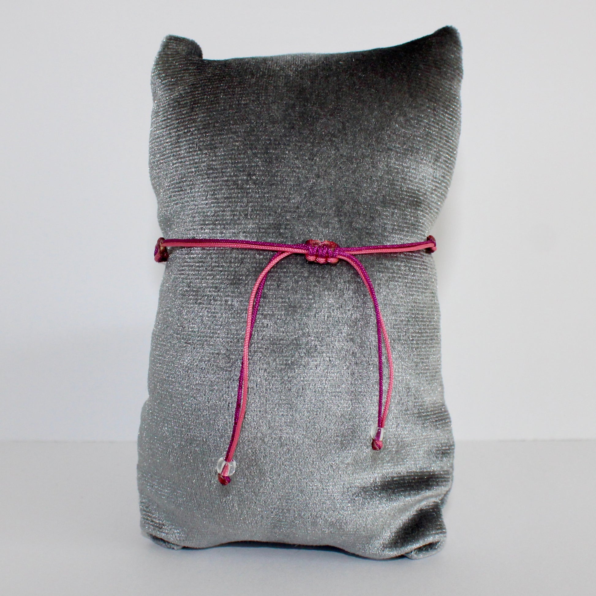 The Antonelli Bracelet is a bracelet with warm pink and purple cord and white with black letters/numbers. The bracelet is adjustable and easy to put on by yourself.