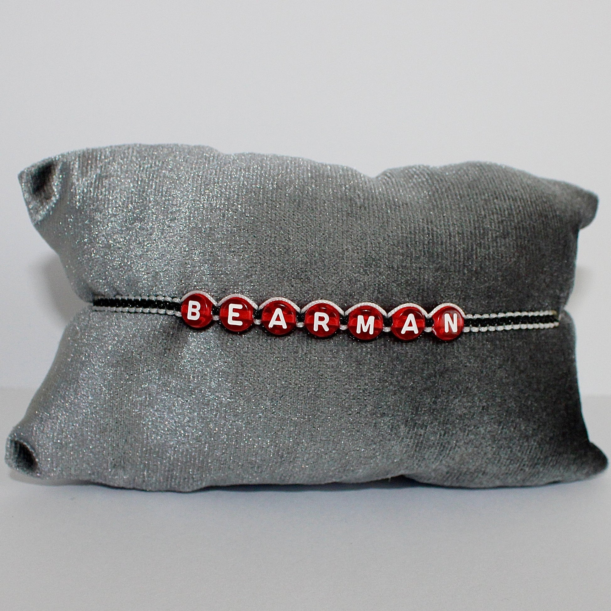 The Bearman Bracelet is a bracelet with white and back cord and red with white letters/numbers. The bracelet is adjustable and easy to put on by yourself.