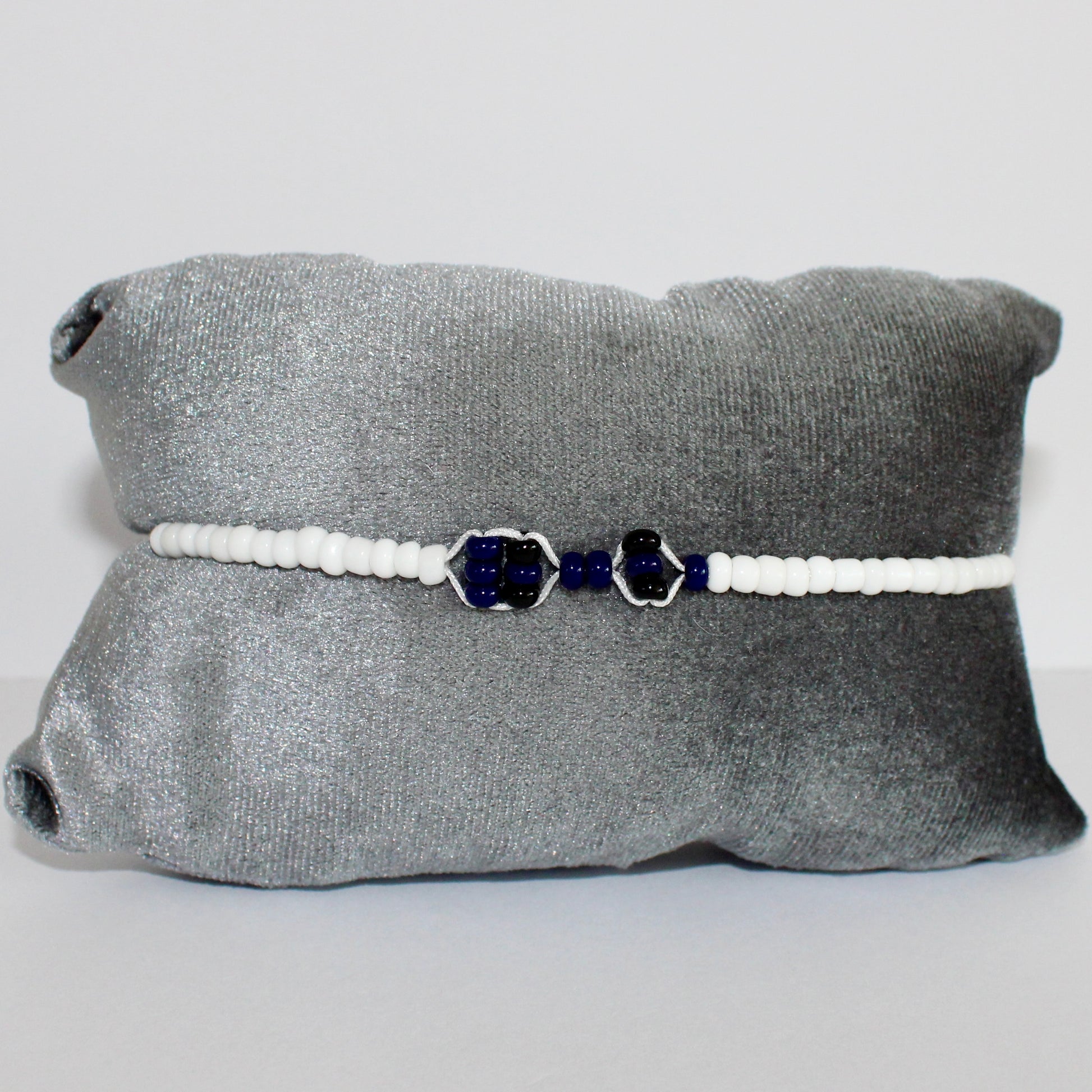 The Dark Blue F1 Car Bracelet is a bracelet with white cord, white beads and dark blue car. The bracelet is adjustable and easy to put on by yourself.