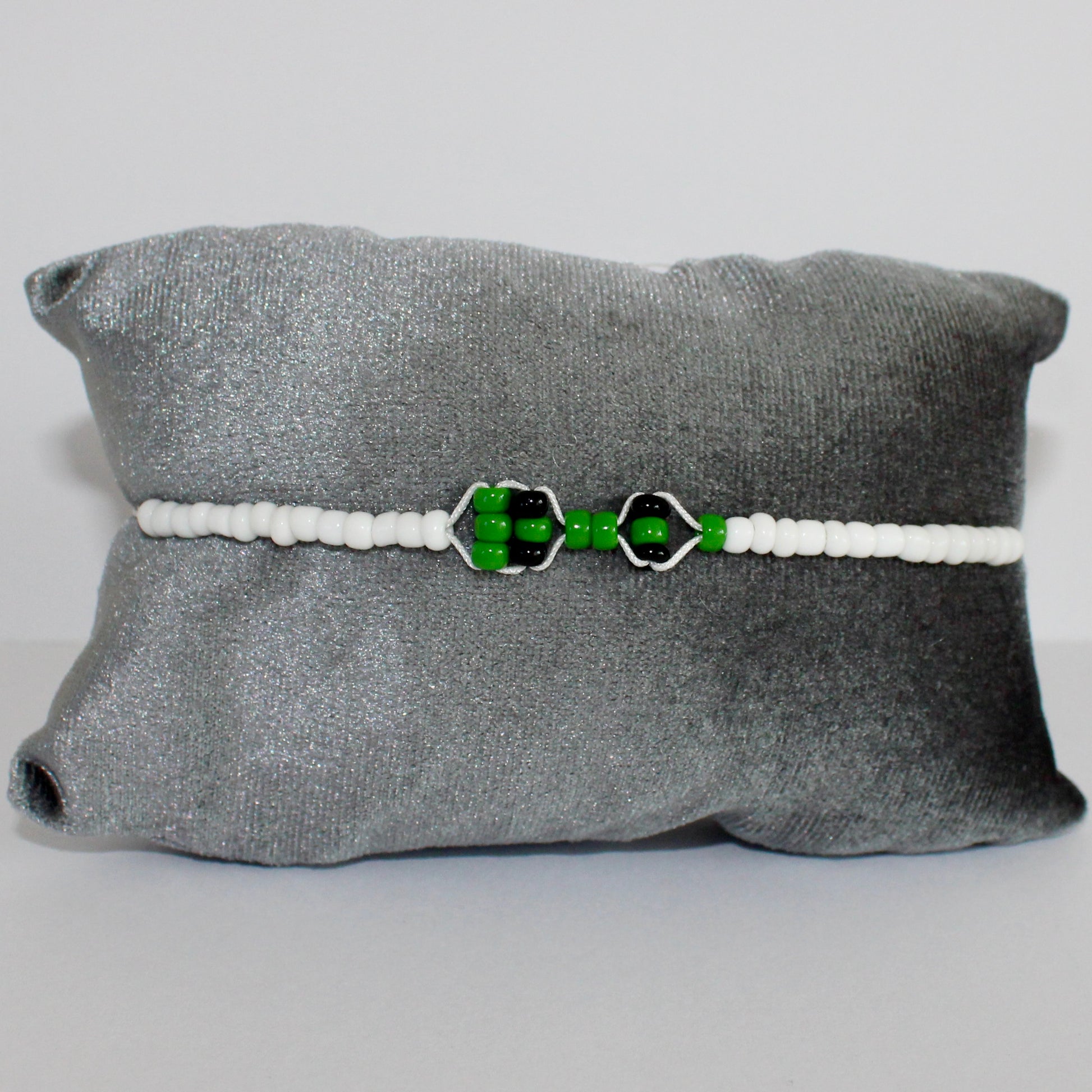 The Green F1 Car Bracelet is a bracelet with white cord, white beads and matt glass beads for the car. The bracelet is adjustable and easy to put on by yourself.