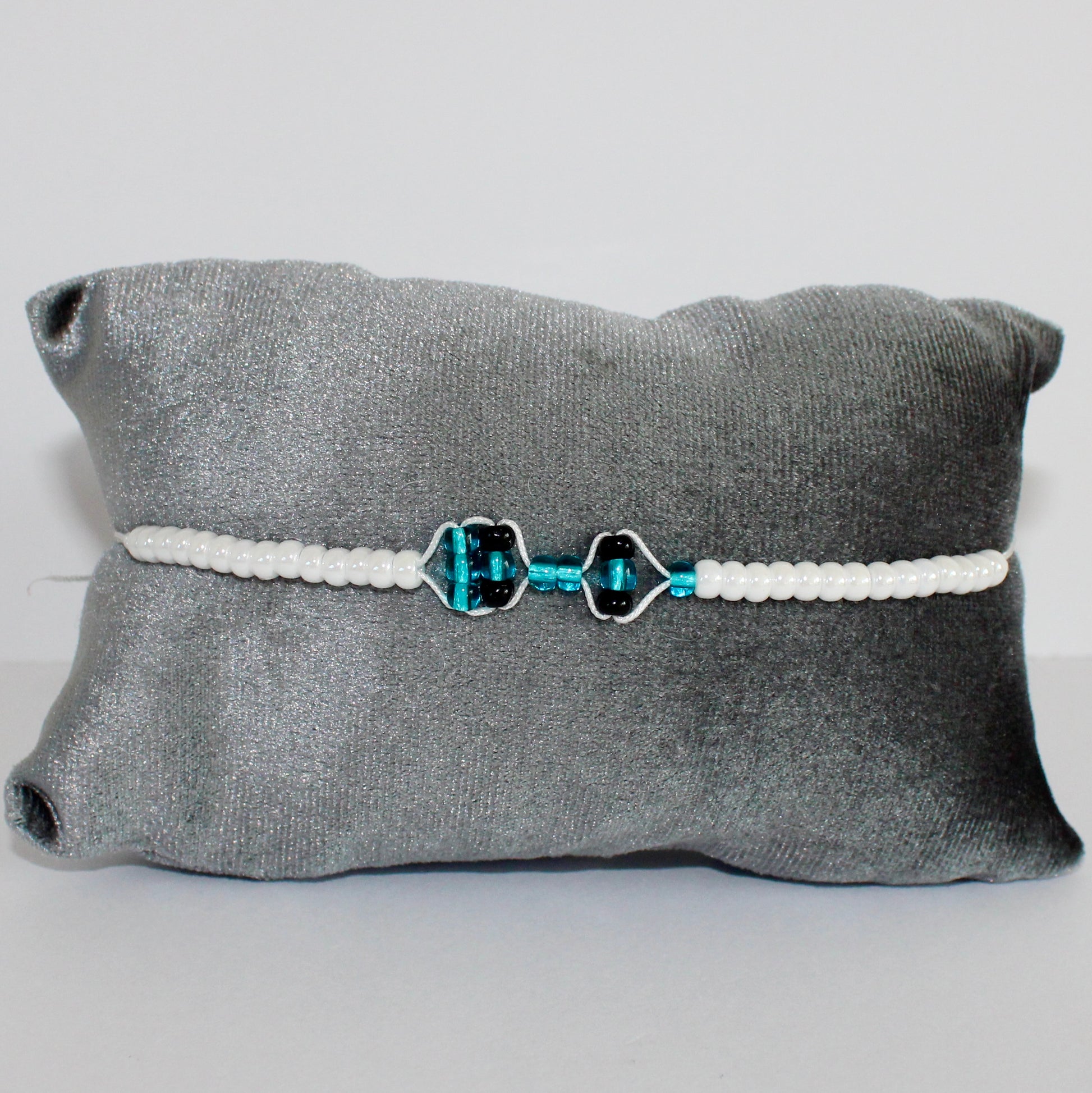 The Turquoise F1 Car Bracelet is a bracelet with white cord, white beads and turquoise glass car. The bracelet is adjustable and easy to put on by yourself.